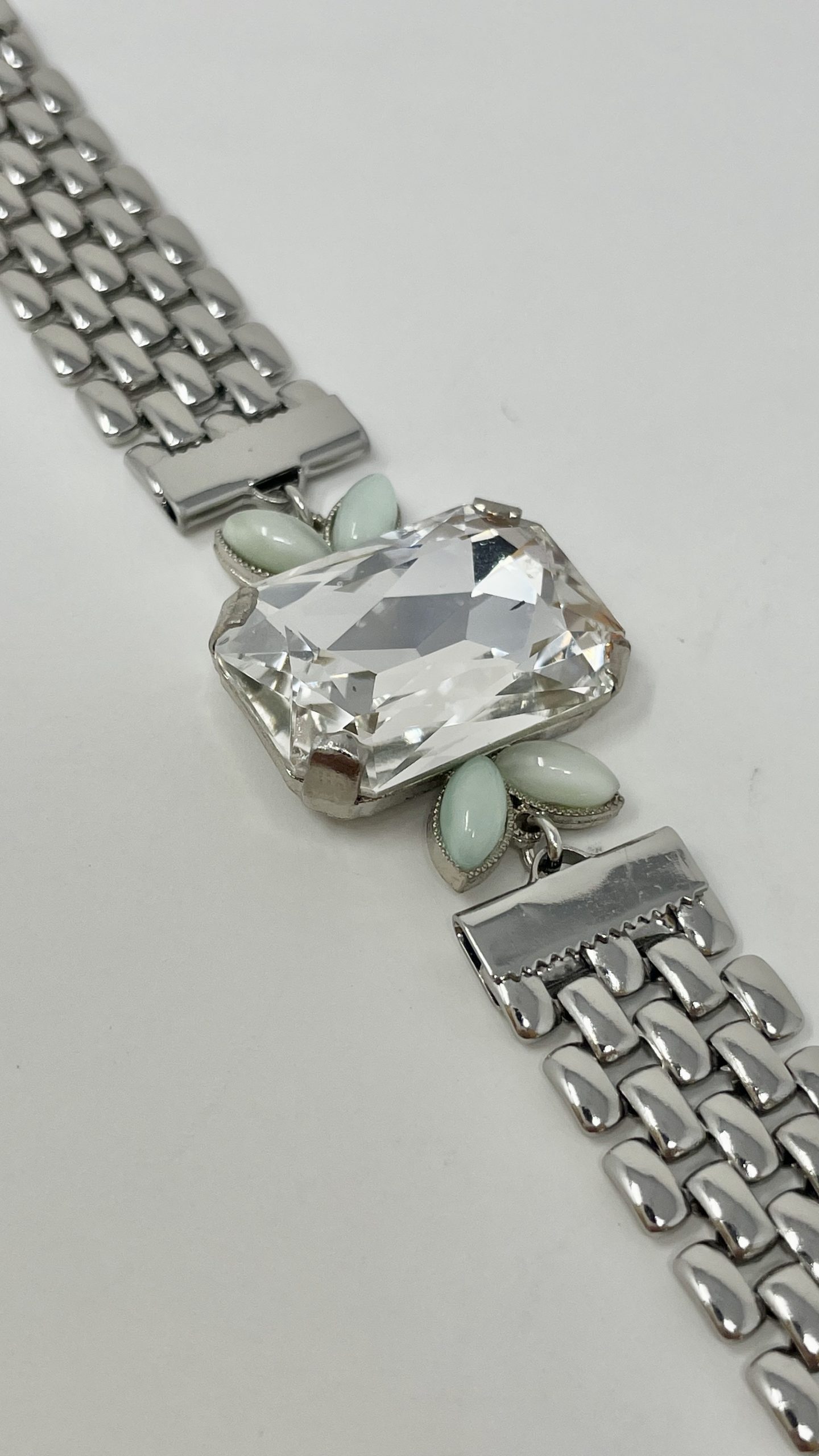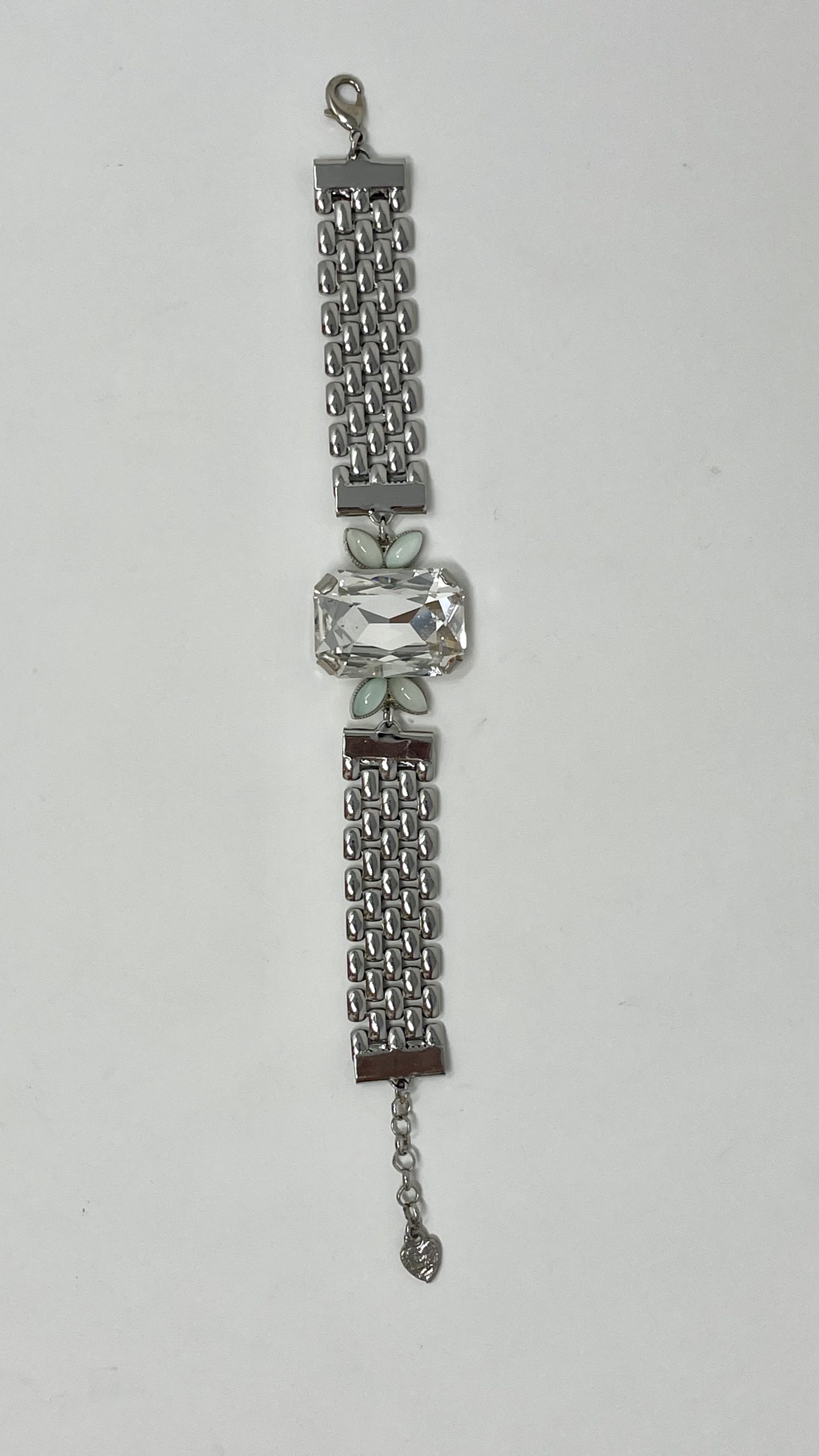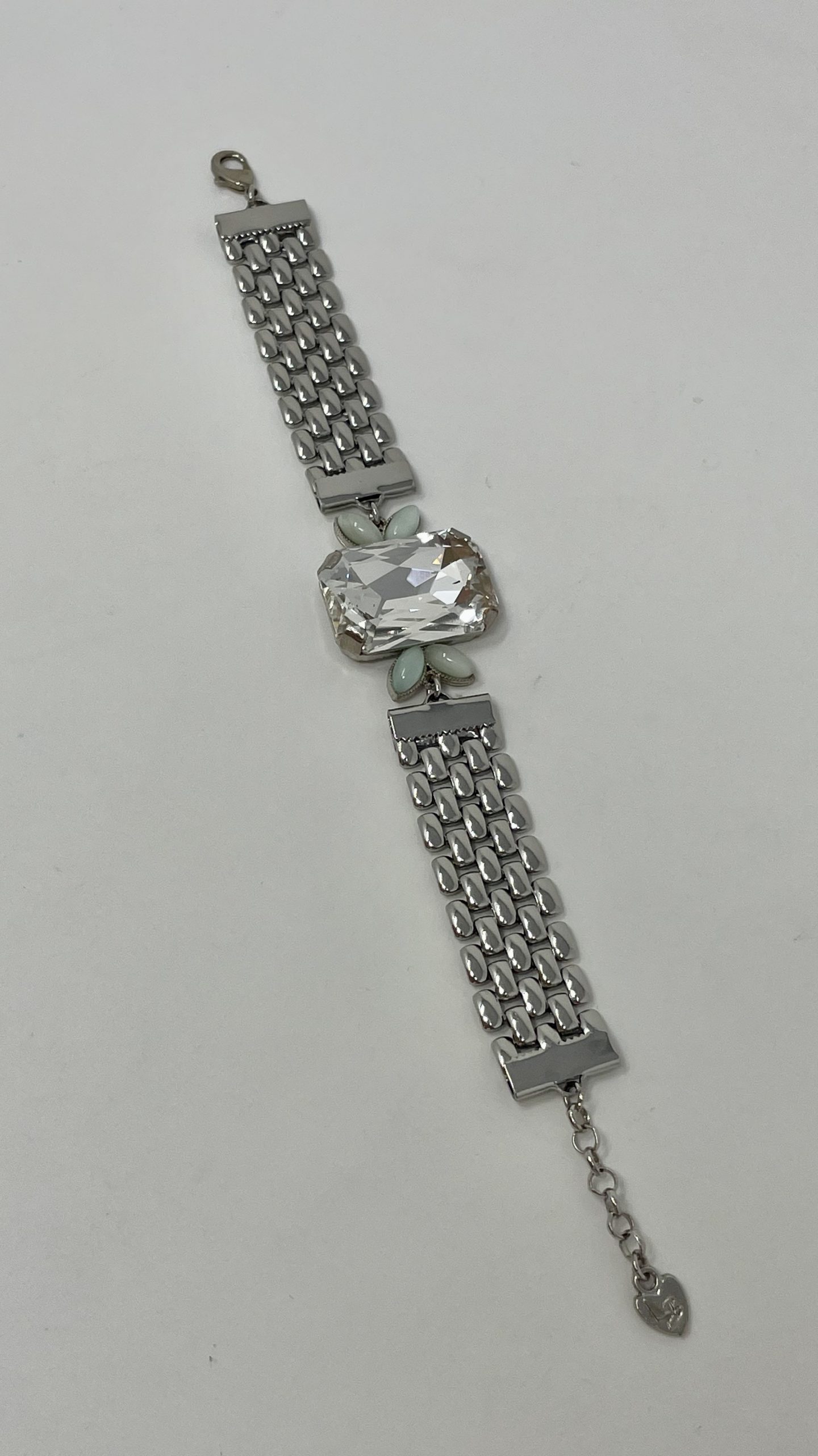 Bracciale in metallo anallergico placcato con elementi in cristallo Swarovski e resina.