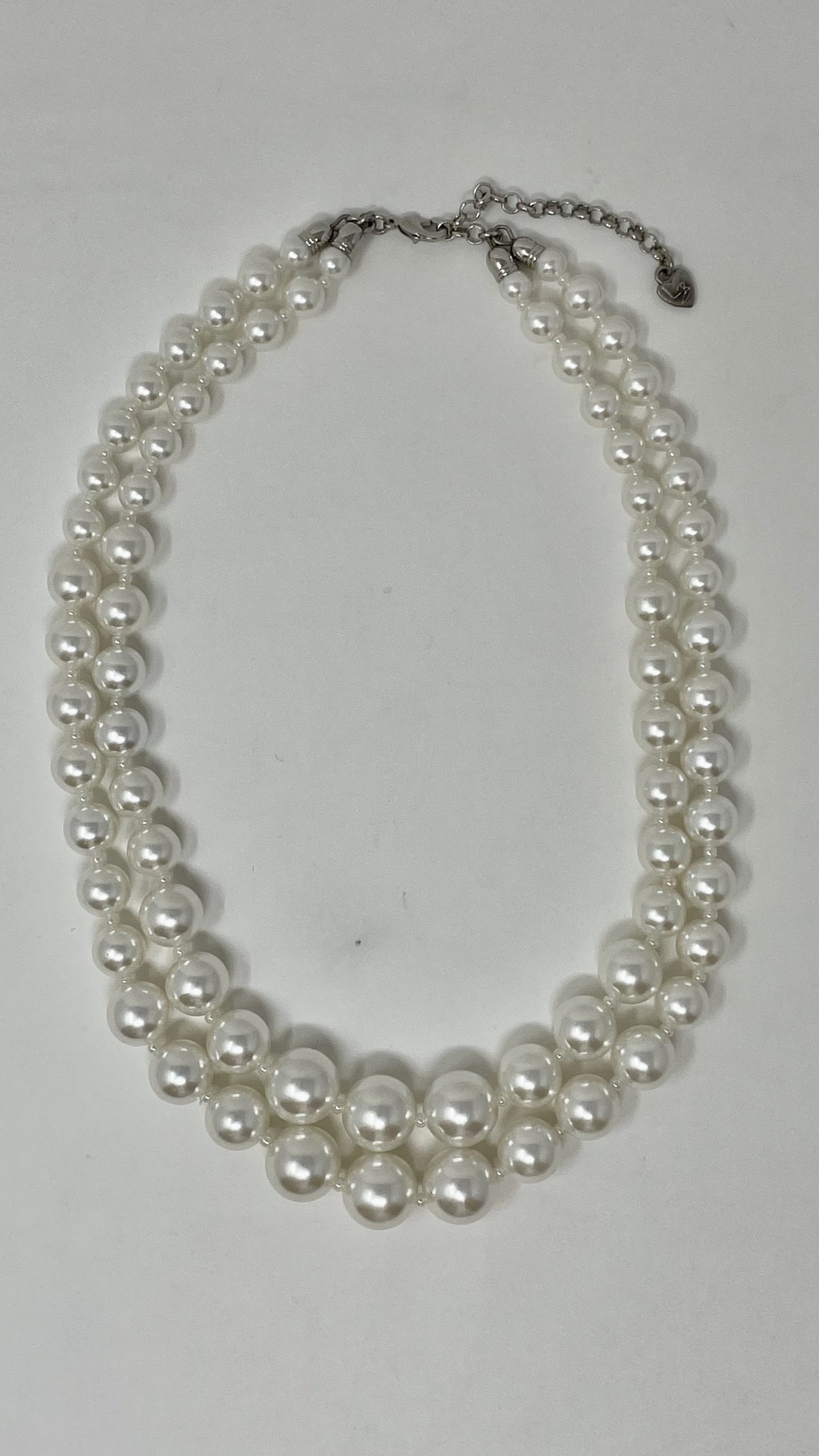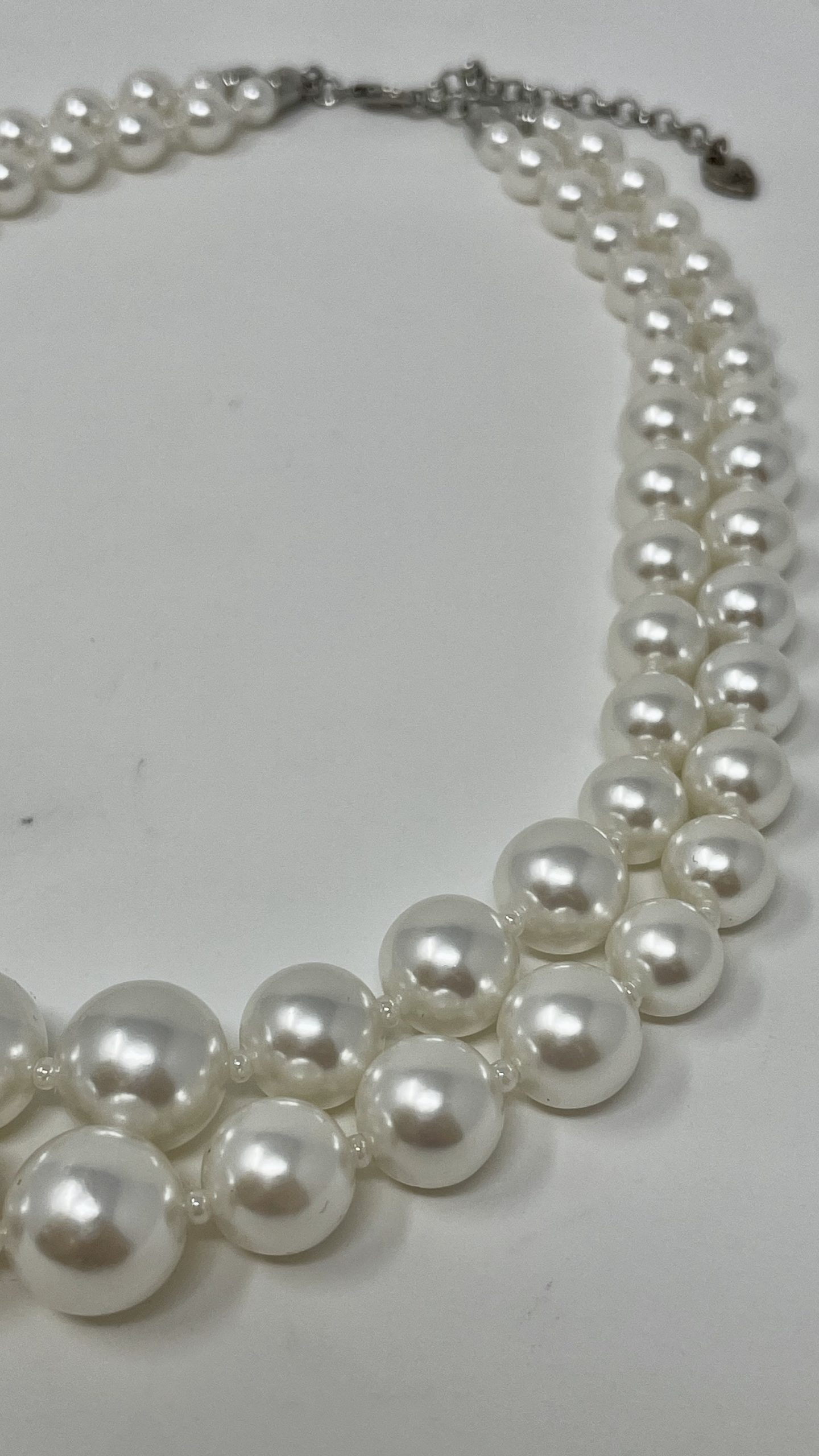 Collana girocollo con 2 fili di perle di bigiotteria e chiusura in metallo anallergico.