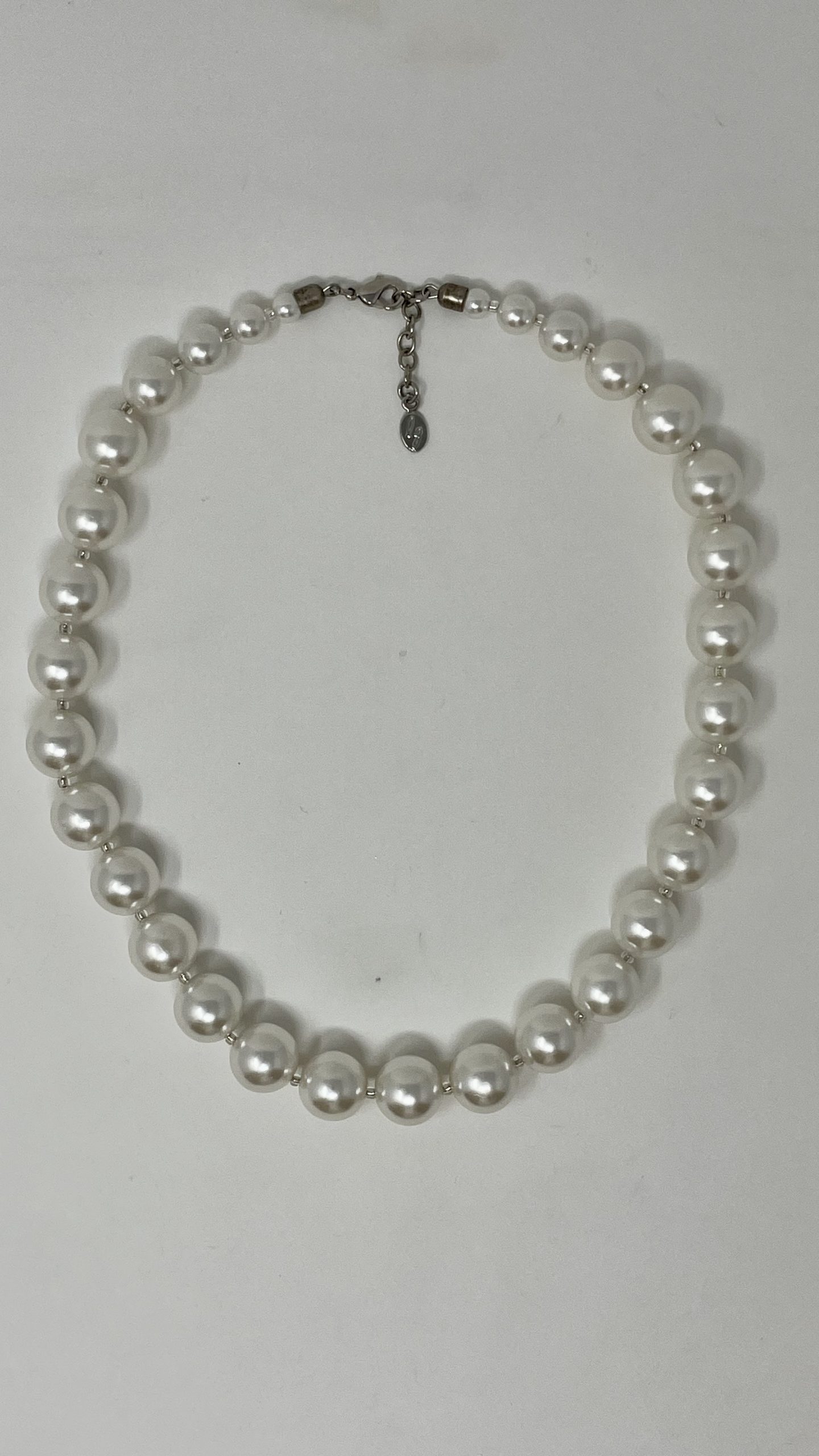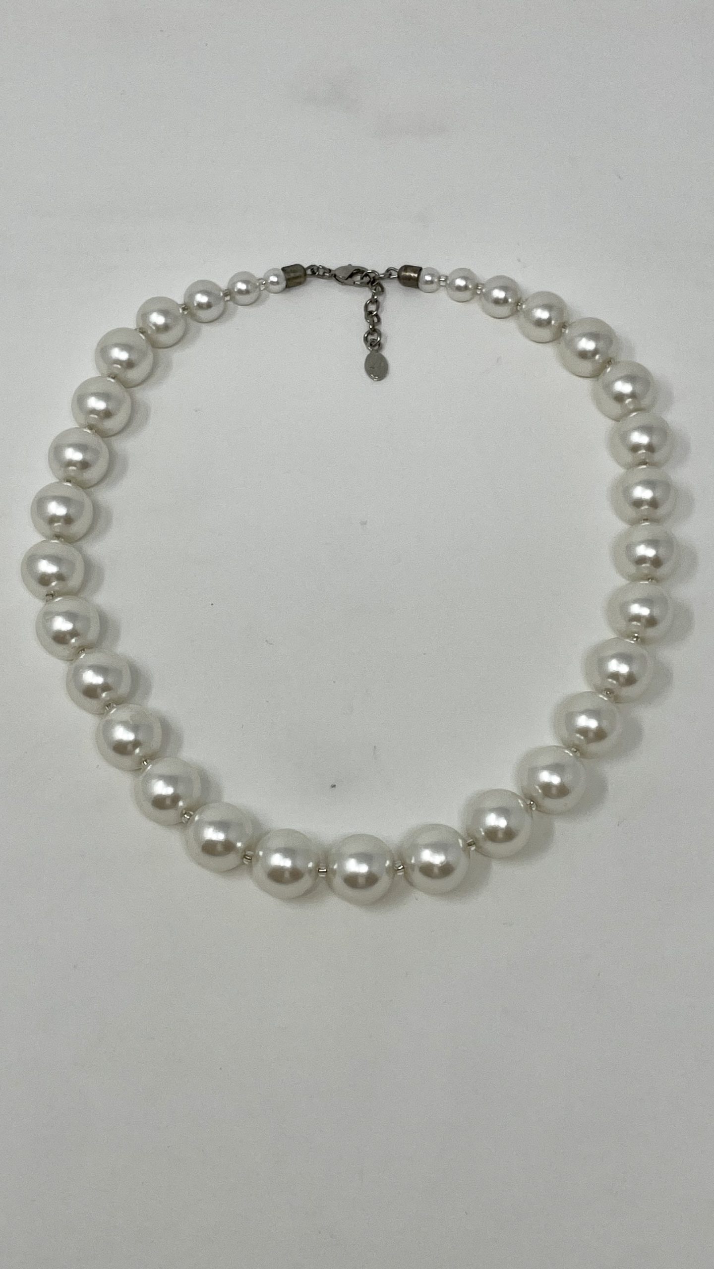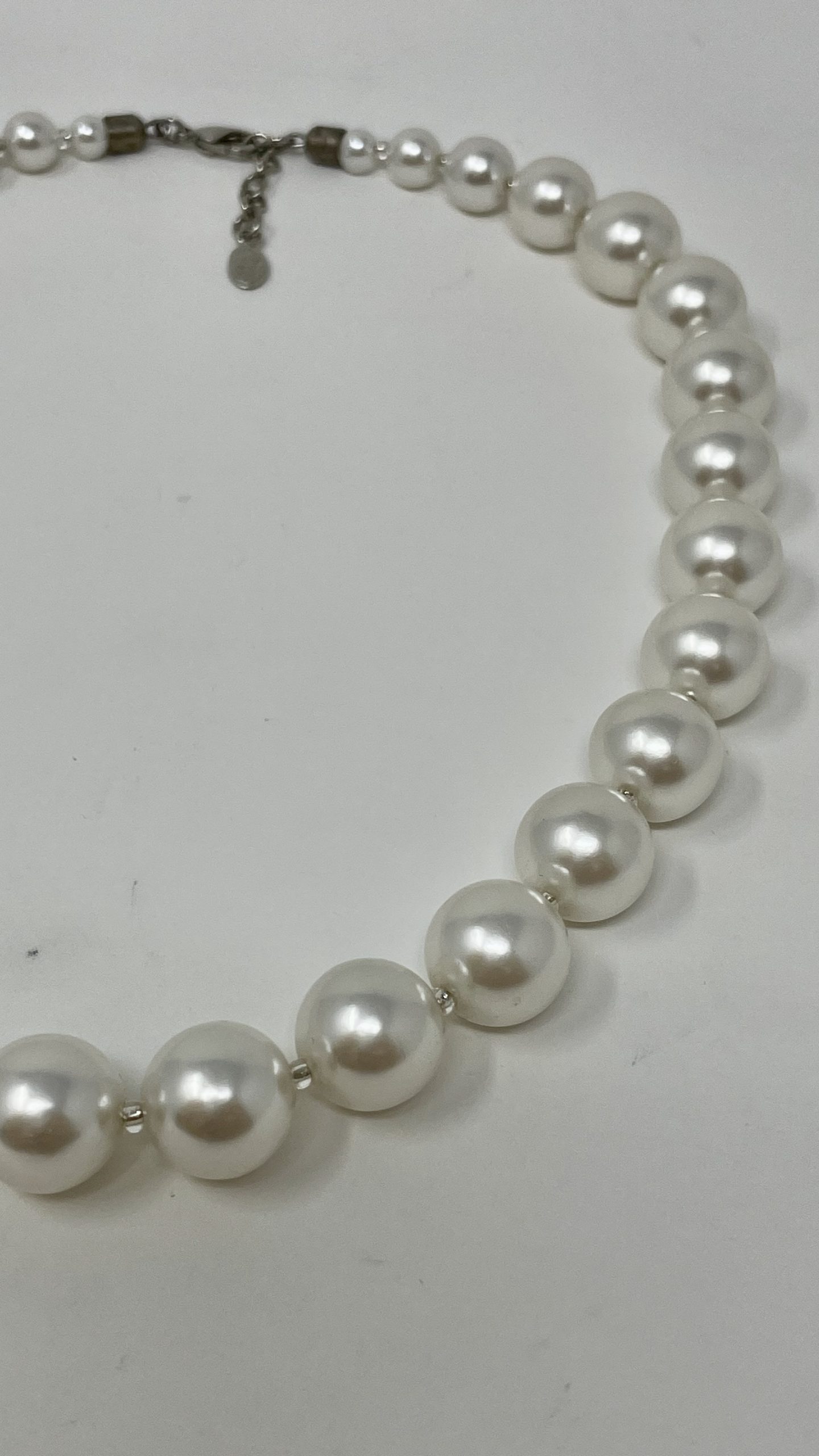 Collana girocollo con perle di bigiotteria e chiusura in metallo anallergico.
