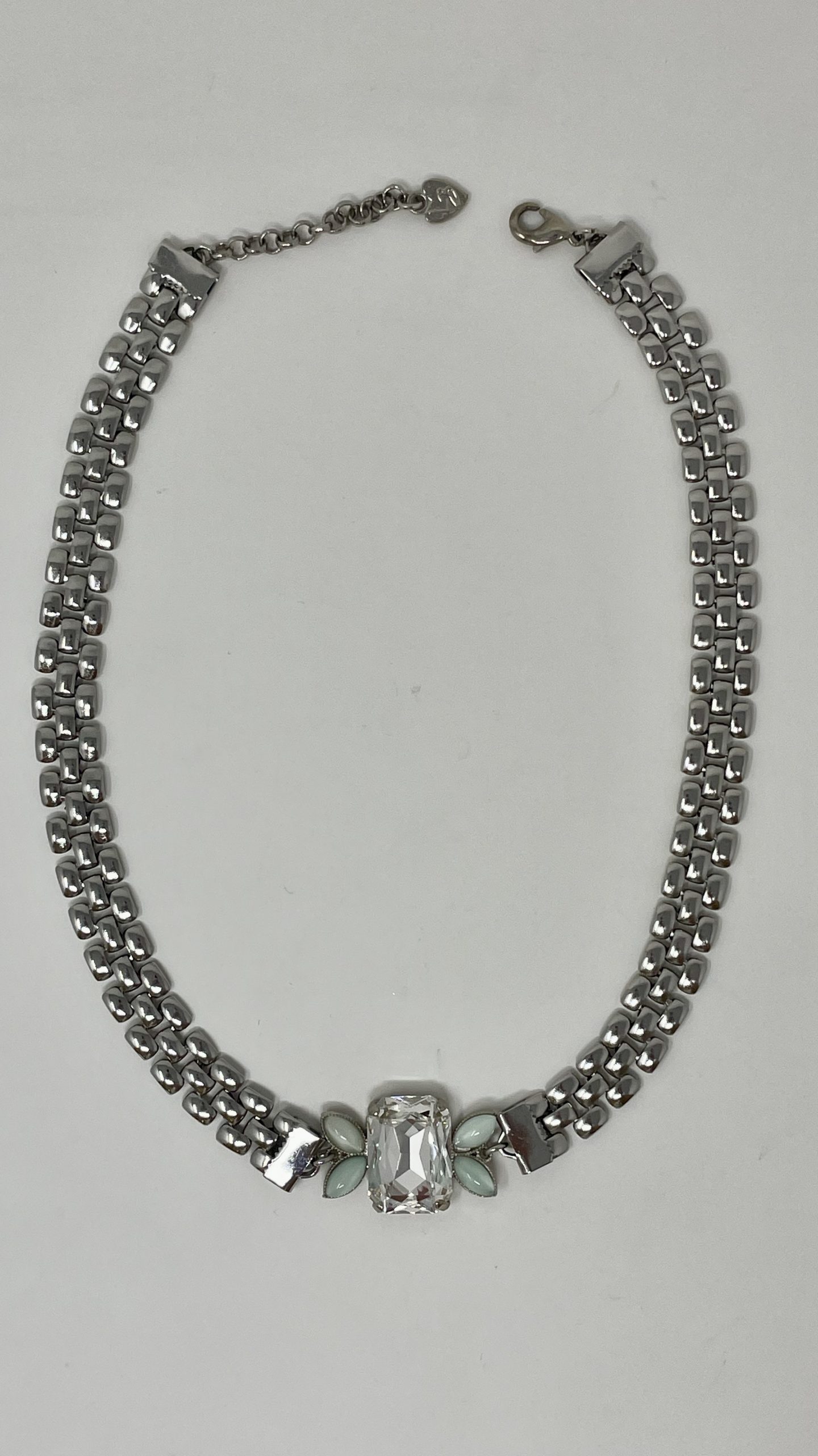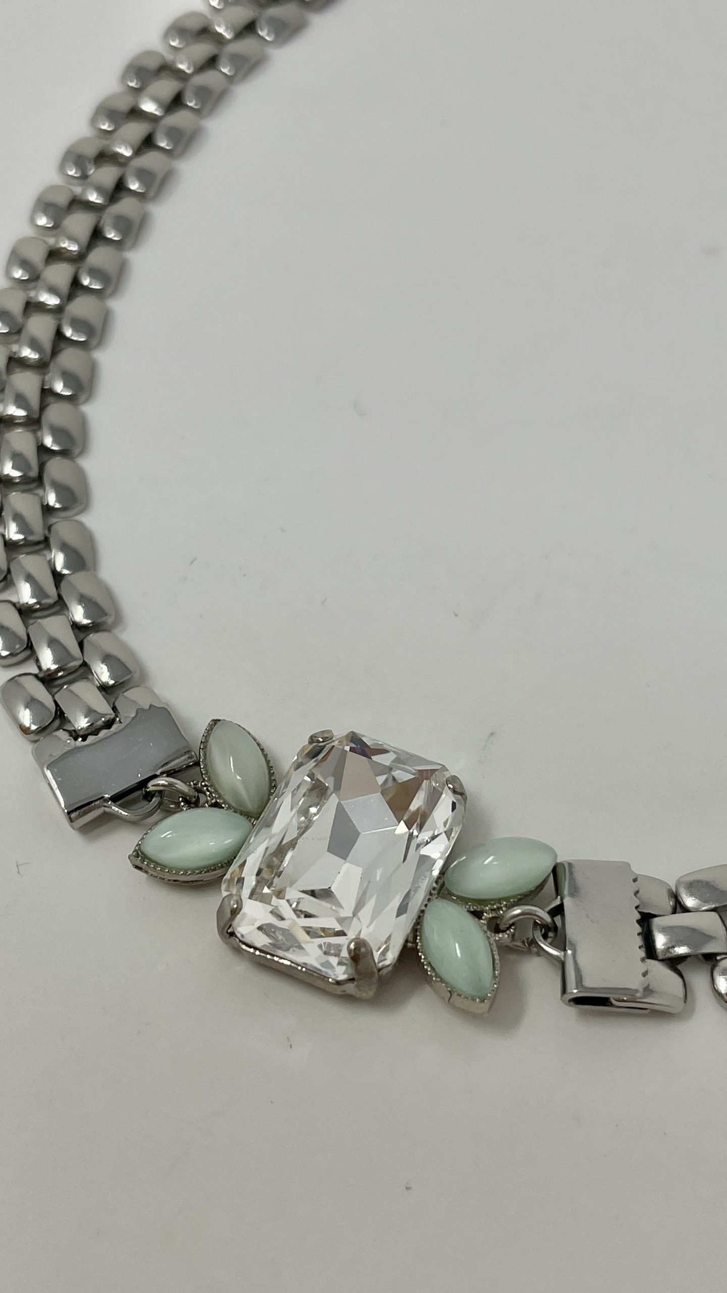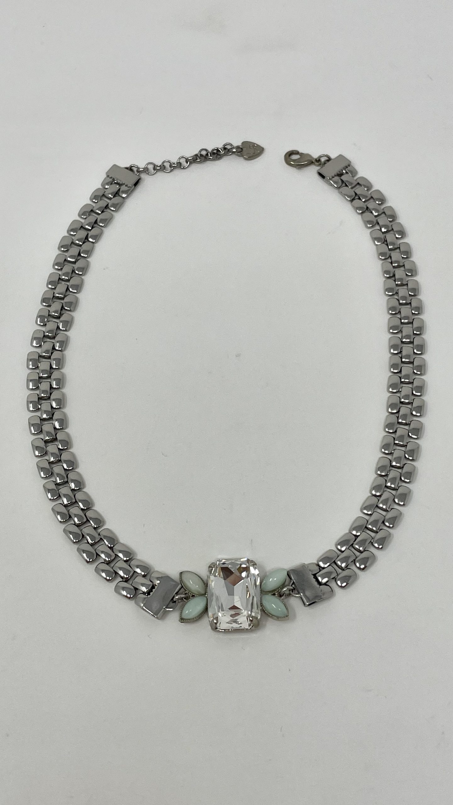 Collana choker in metallo anallergico placcato con elementi in cristallo Swarovski e resina.