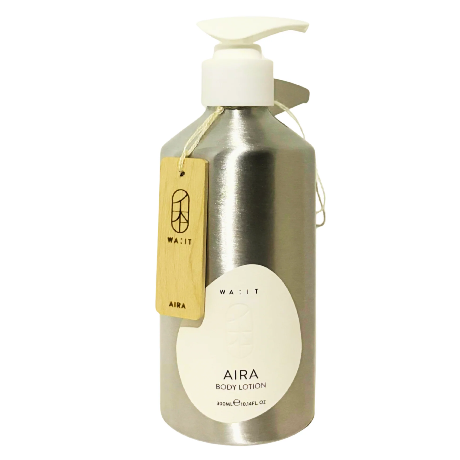 AIRA è una lozione corpo nutriente pensata per accompagnare momenti di pausa, comfort ed equilibrio interiore.